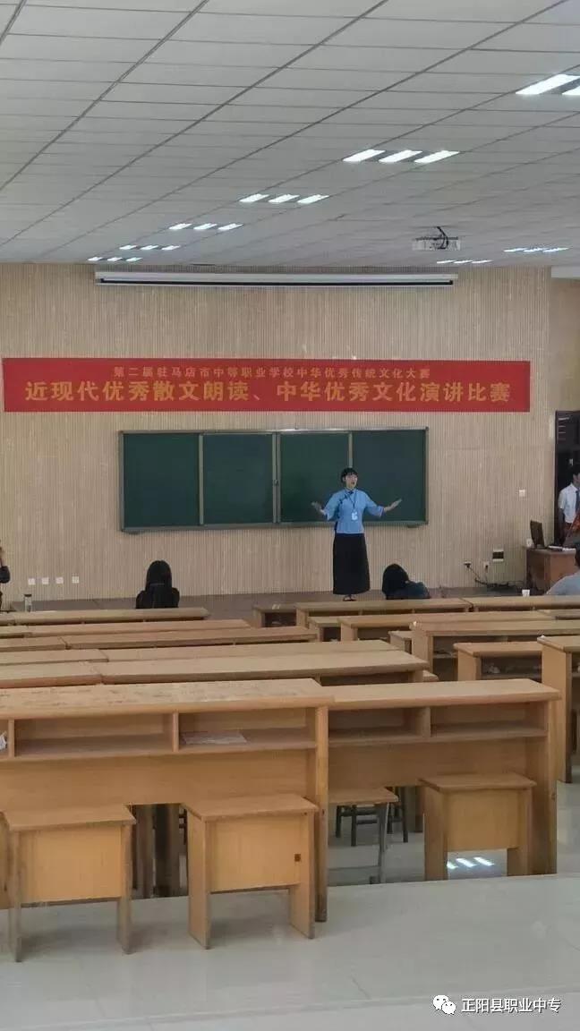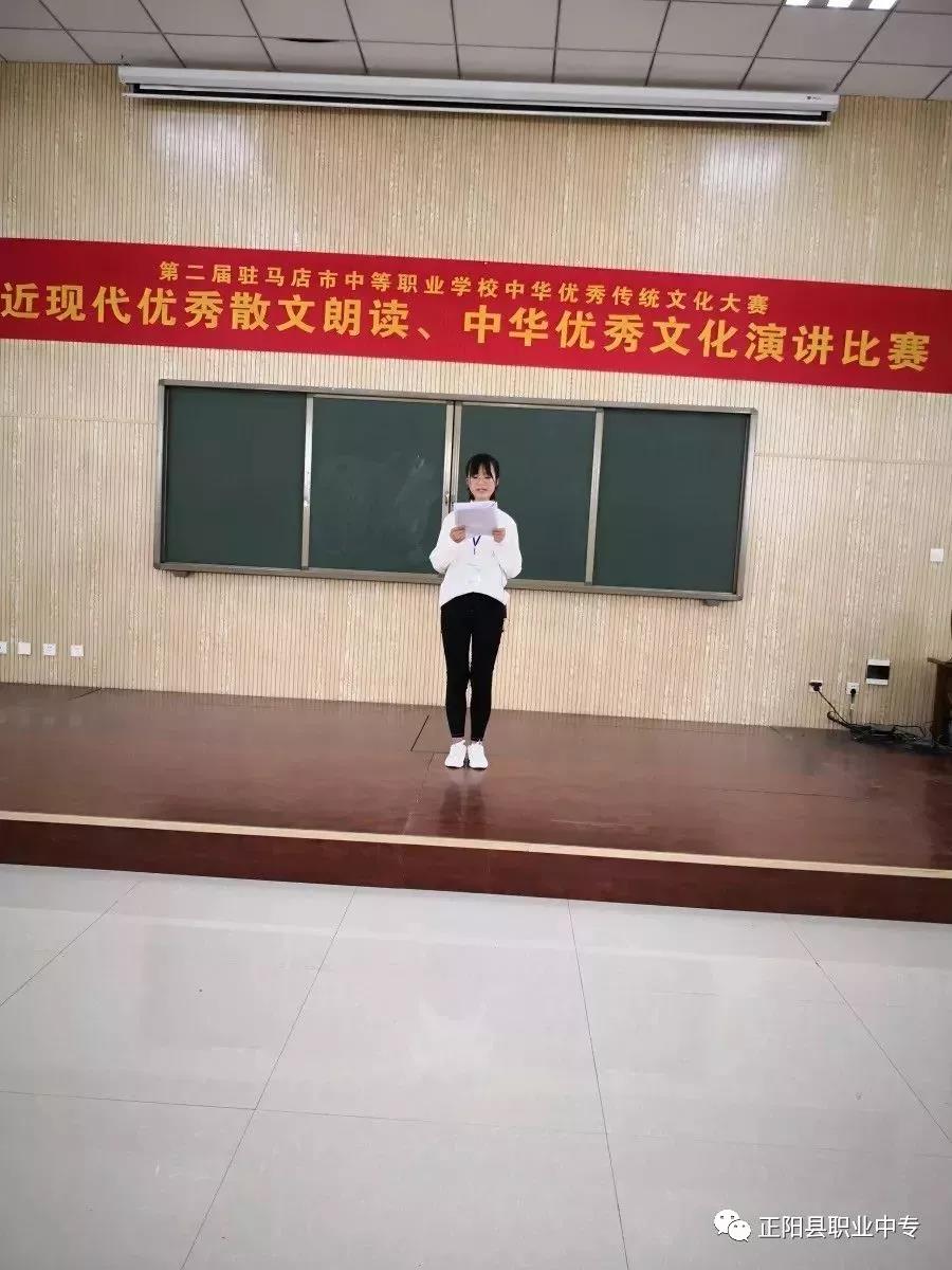 2018年5月7日一9日,我校代表队参加了驻马店市中职中华优秀传统文化大赛,我校参加了九个项目,获得一等奖10个、二等奖6个,三等奖1个,参赛总积分排名全市第一,为正阳县职业教育增光添彩!再次在全市展示了我校职业教育的办学水平和实力。